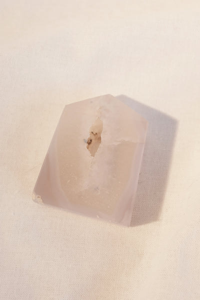 Add grounding elegance to your space with this polished agate geode point. Carved to reveal swirling bands and crystalline structure, it brings harmony, emotional balance, and energetic amplification wherever it's placed.