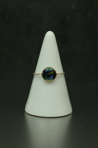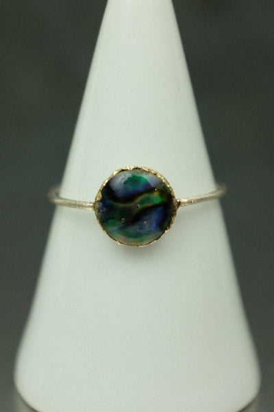 A simple yet striking abalone shell electroformed silver-plated ring, perfect for everyday wear.