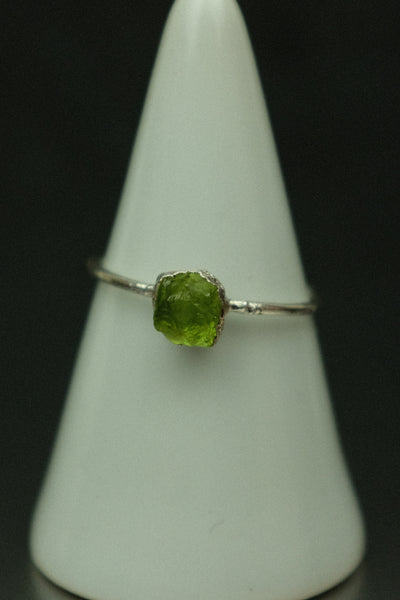 A simple yet striking peridot electroformed silver-plated ring, perfect for everyday wear.