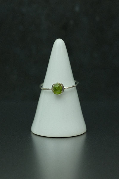 A simple yet striking peridot electroformed silver-plated ring, perfect for everyday wear.