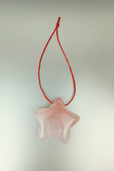This beautiful rose quartz measures approximately 4mm in height and is elegantly suspended from a red string. Perfect for adding a touch of sparkle to your festive decor!