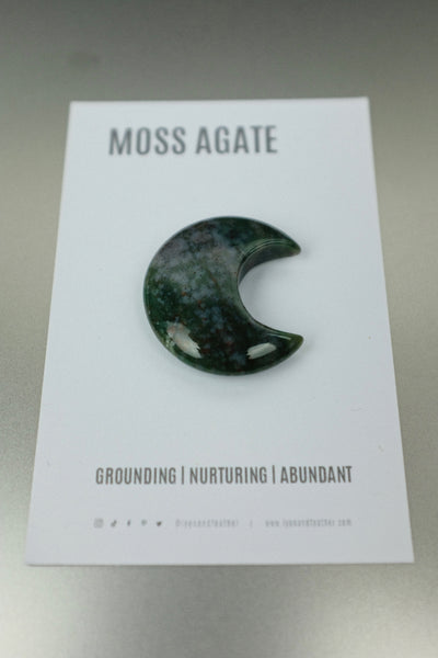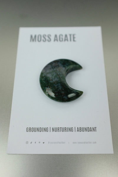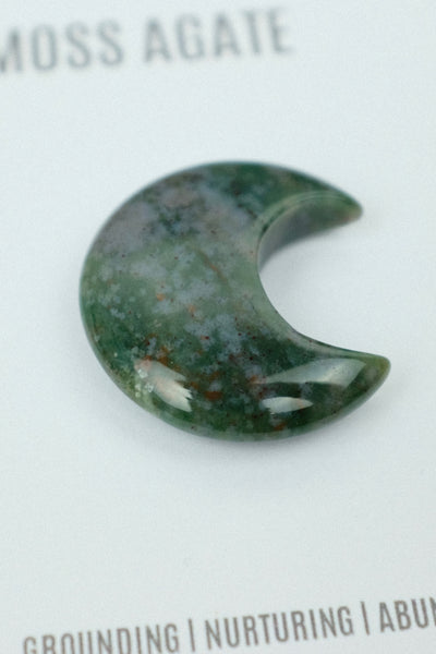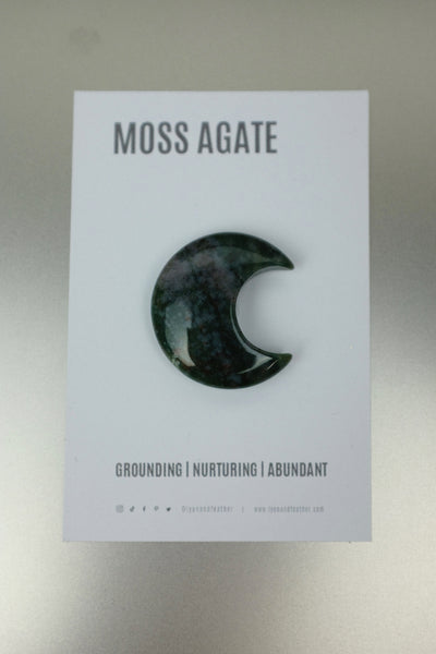 Reconnect with nature’s calm and steady energy through this Moss Agate Crescent Moon crystal. Beautifully carved and earthy, this piece embodies growth, grounding, abundance, and emotional balance—perfect for altar spaces, meditation, or everyday intention work.