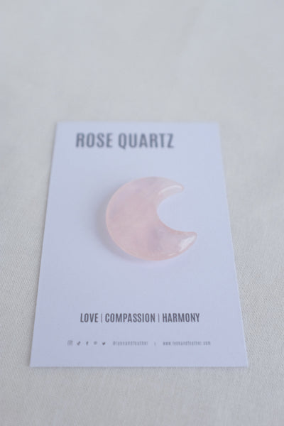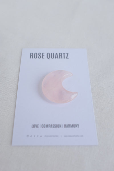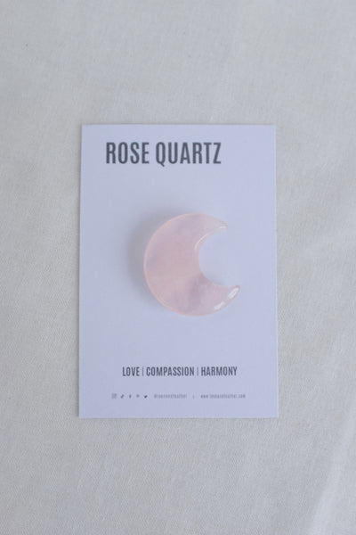 A soft pink crescent moon carved from rose quartz—your gentle reminder to lead with love. This crystal invites warmth, emotional healing, and self-compassion, making it a perfect everyday support stone.