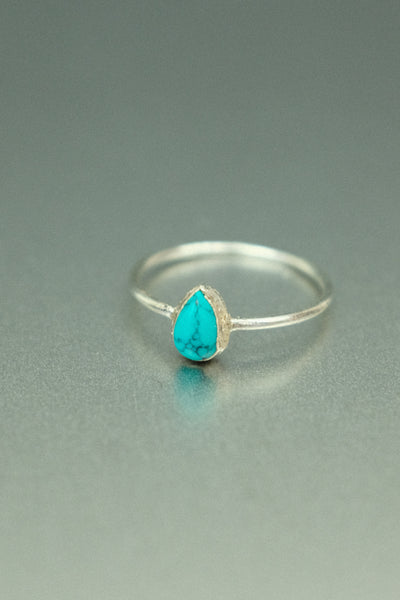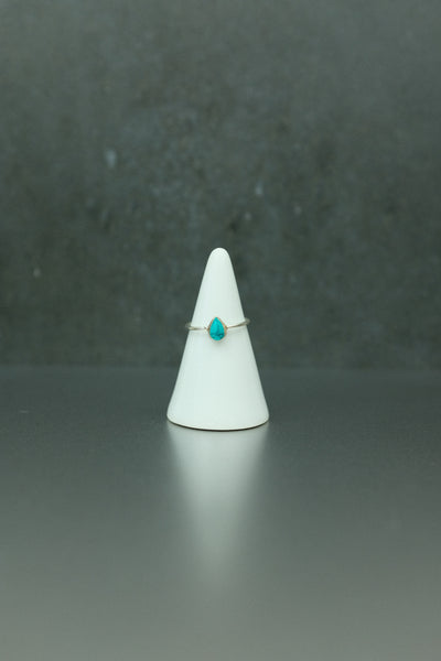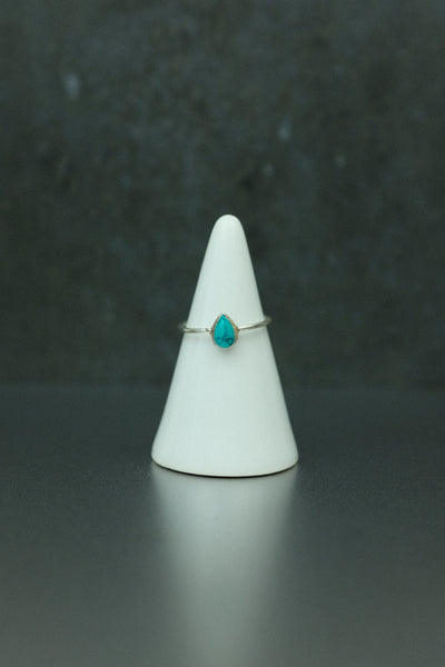 The turquoise stone measures approximately 5mm long, 4mm wide, and 3mm tall. Wear it alone for an elegant touch or stack it with others.