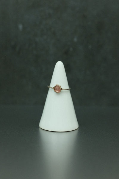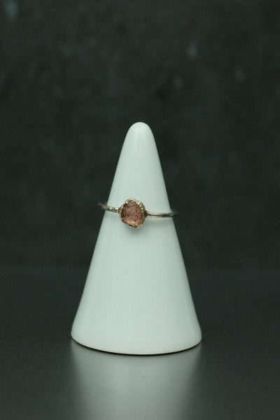A simple yet striking strawberry quartz electroformed silver-plated ring, perfect for everyday wear.