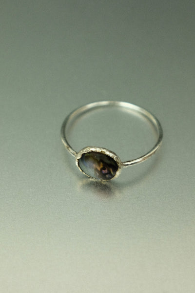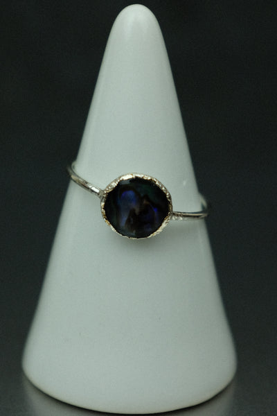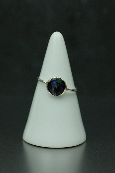 A simple yet striking abalone shell electroformed silver-plated ring, perfect for everyday wear.