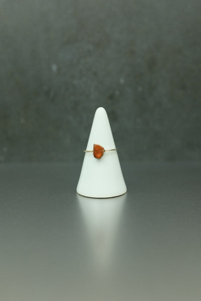 The carnelian stone measures approximately 7mm long, 4mm wide, and 2mm tall. Wear it alone for an elegant touch or stack it with others.
