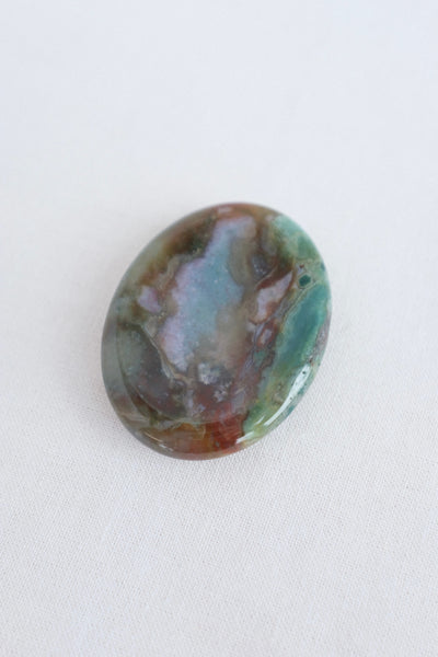 Green moss agate worry stone for grounding and growth