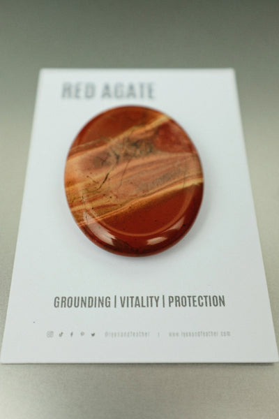 A smooth, oval red agate palm stone—warm-toned and grounding. This stone brings a deep sense of emotional steadiness, confidence, and security. Ideal for meditation, stress relief, or simply carrying as a protective talisman.